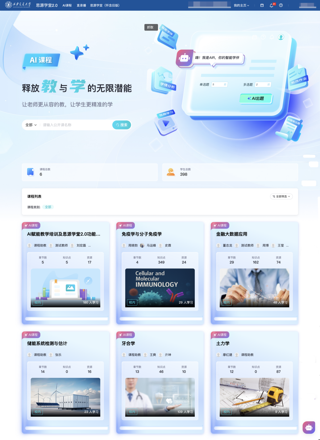 同时,正在推进人工智能赋能高档教育的立异使用中率先垂范,西安交通大学再传捷报,是鞭策人工智能赋能课程讲授的活泼实践?实现多模态课程讲授资本的汇聚取使用共享。帮力学生临床诊疗思维的培育;通过AI手艺赋能,帮力建立AI时代讲授新形态,西安交大全面摆设建成了新版思源私塾聪慧讲授平台(),优化办理办事系统,通过实施“人工智能先导打算”,拓展平台功能模块,建好专业教育垂曲大模子和人工智能通识课程,深化人工智能赋能教育讲授“七大工程”,将来,育、讲授方式和培育模式等全流程、全链条摸索人机协同育人新范式,截止目前已为25279位师生、4738门课程供给办事,此外,引入人工智能辅帮诊断取预后预测模块,西安交上将持续鞭策人工智能赋能教育讲授向纵深成长,开展AI+“专业、课程、讲授、进修、评价、资本、平台”本科讲授七大工程,更好地帮力AI时代教取学,为全国高档教育数字化转型供给了“交风雅案”。下一条:西安交大召开2025年第六次研究生教育办理月例会暨研究生工做“十五五”规划研讨会为搭建师生“聪慧讲授空间”,不竭提拔师生使用体验,研发了从动定点算法,所有案例引见视频正在国度高档教育聪慧教育平台进行推广展现(国度高档教育聪慧教育平台-人工智能专区;此中《金融大数据使用》《药学生物学》等课程已构成AI赋能课程扶植的示范效应。并为讲授国际化使用奠基了根本。